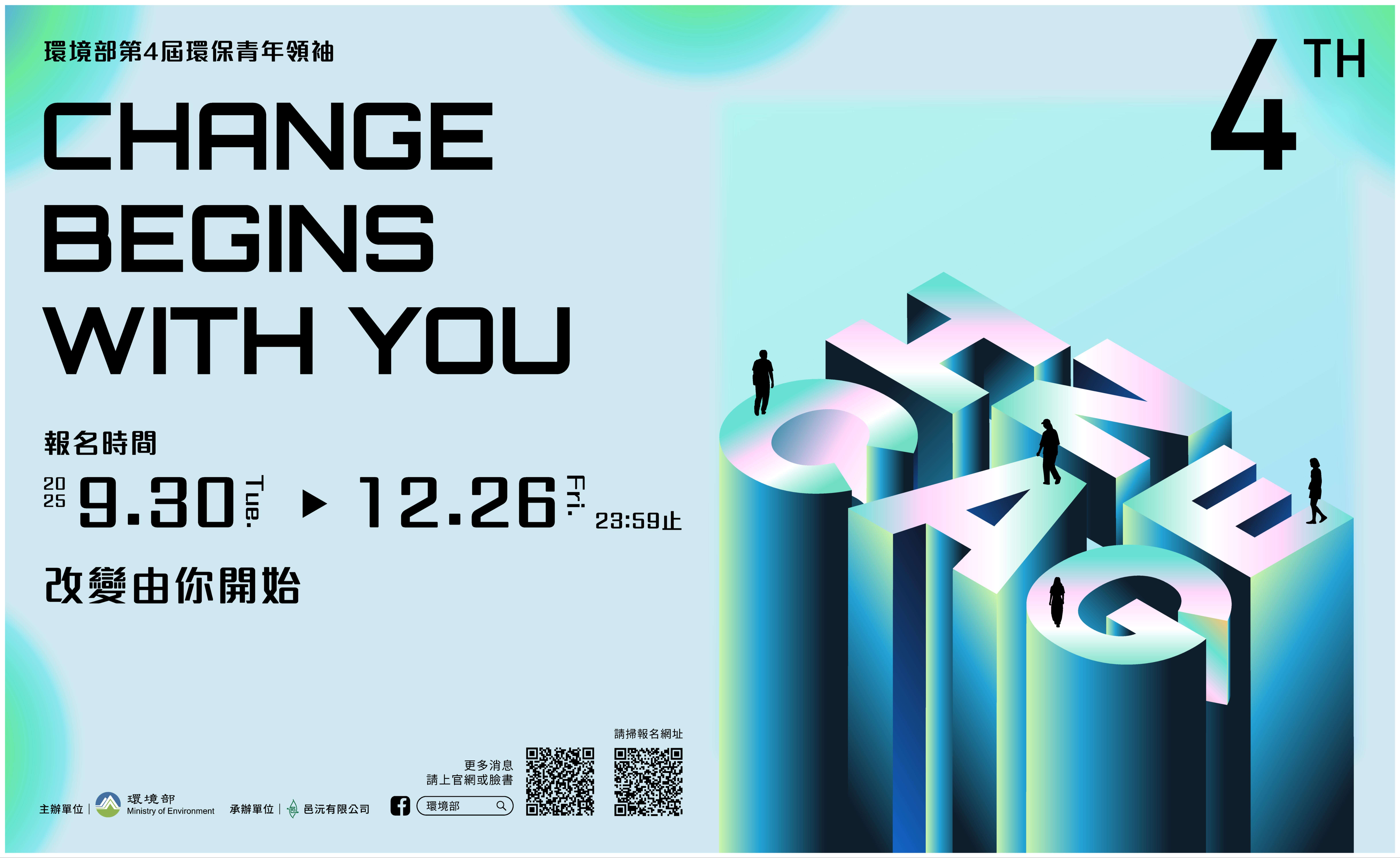 一、為發掘30歲以下對於環境保護或環境教育議題有想法、有領導力及影響力的青年,分享其對於環境事務的創新行動與貢獻,環境部特辦理旨揭活動。