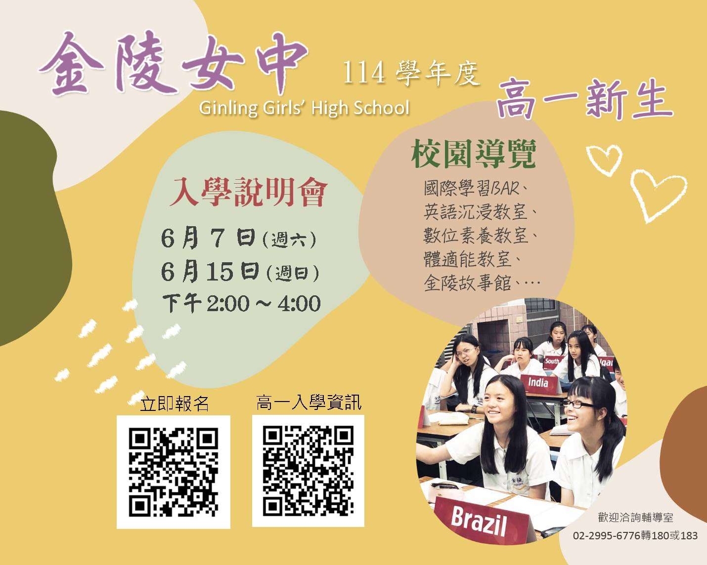 一、本校為提供國三家長及學生,了解金陵教育理念及特色課