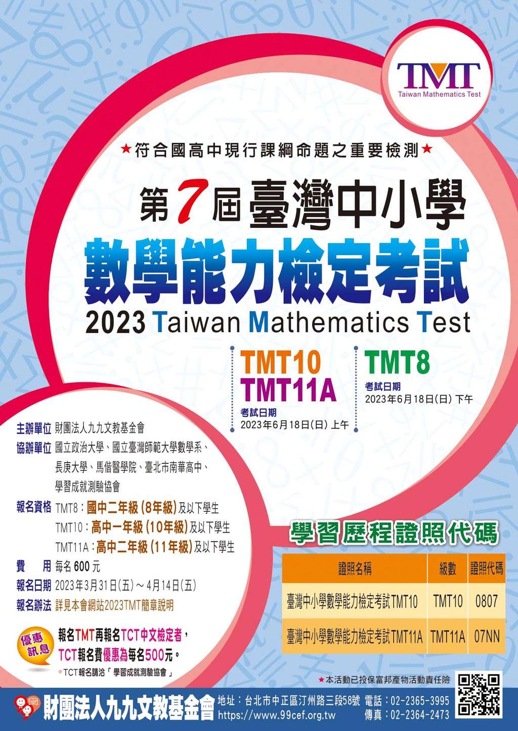 1. TMT8:全國8年級(國中二年級)以下(含)在學學生