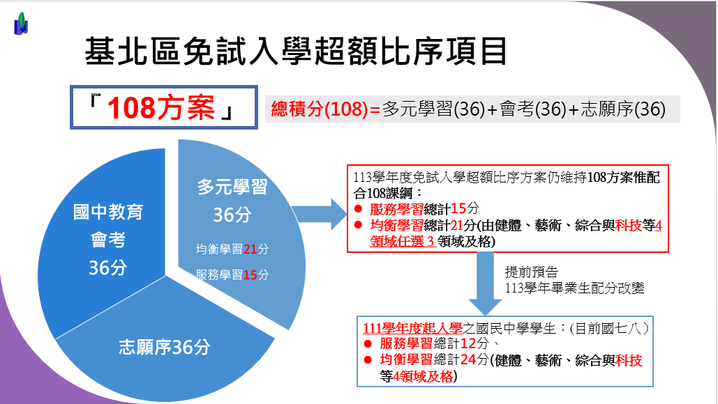 *請留意「比序項目積分對照表」之『多元學習表現』九年級與七八年級適用版本不同,詳情請參閱附件。