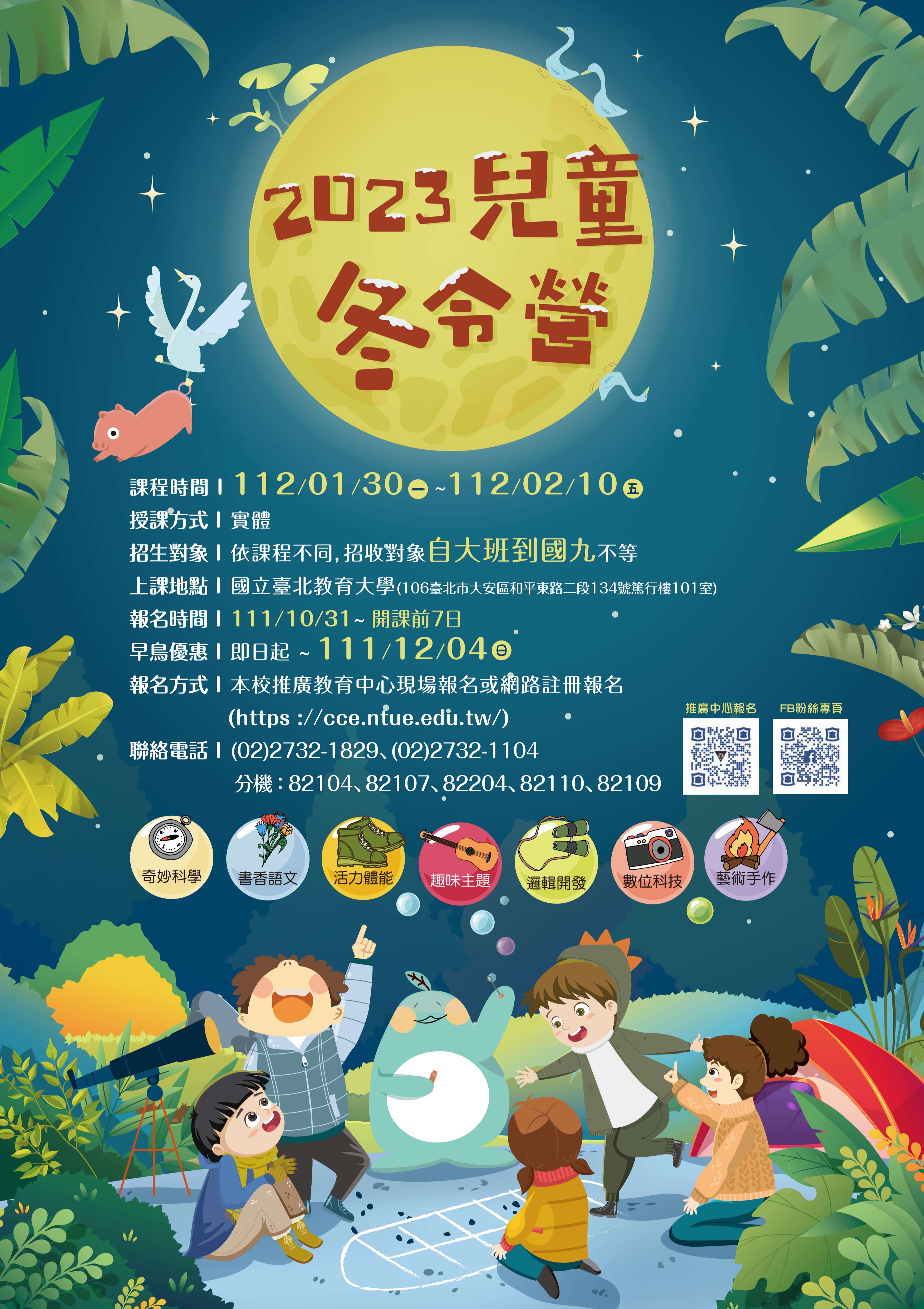 檢附冬令營海報及活動課程簡章(https://cce.ntue.edu.tw/onenews/122)