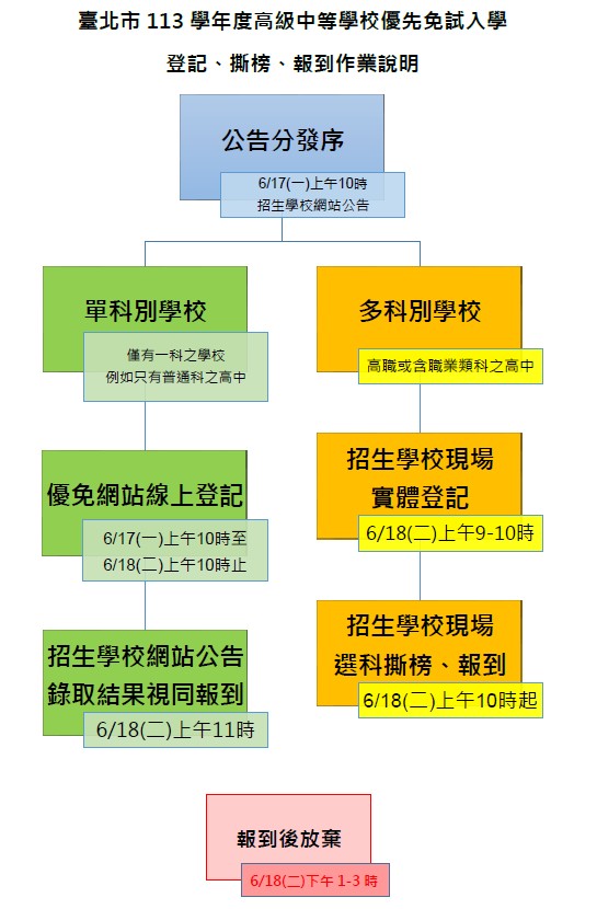 1. 各招生學校網頁及校門口公告分發序及登記之地點。