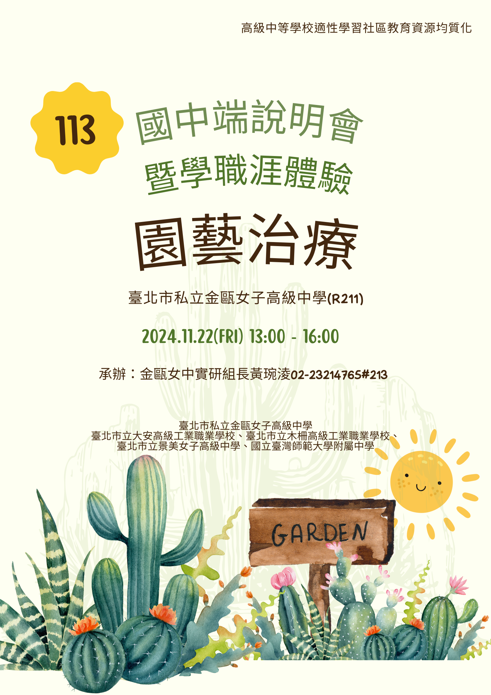 一、目的:為使國中端教師了解北市三區均質化聯盟五校(金甌