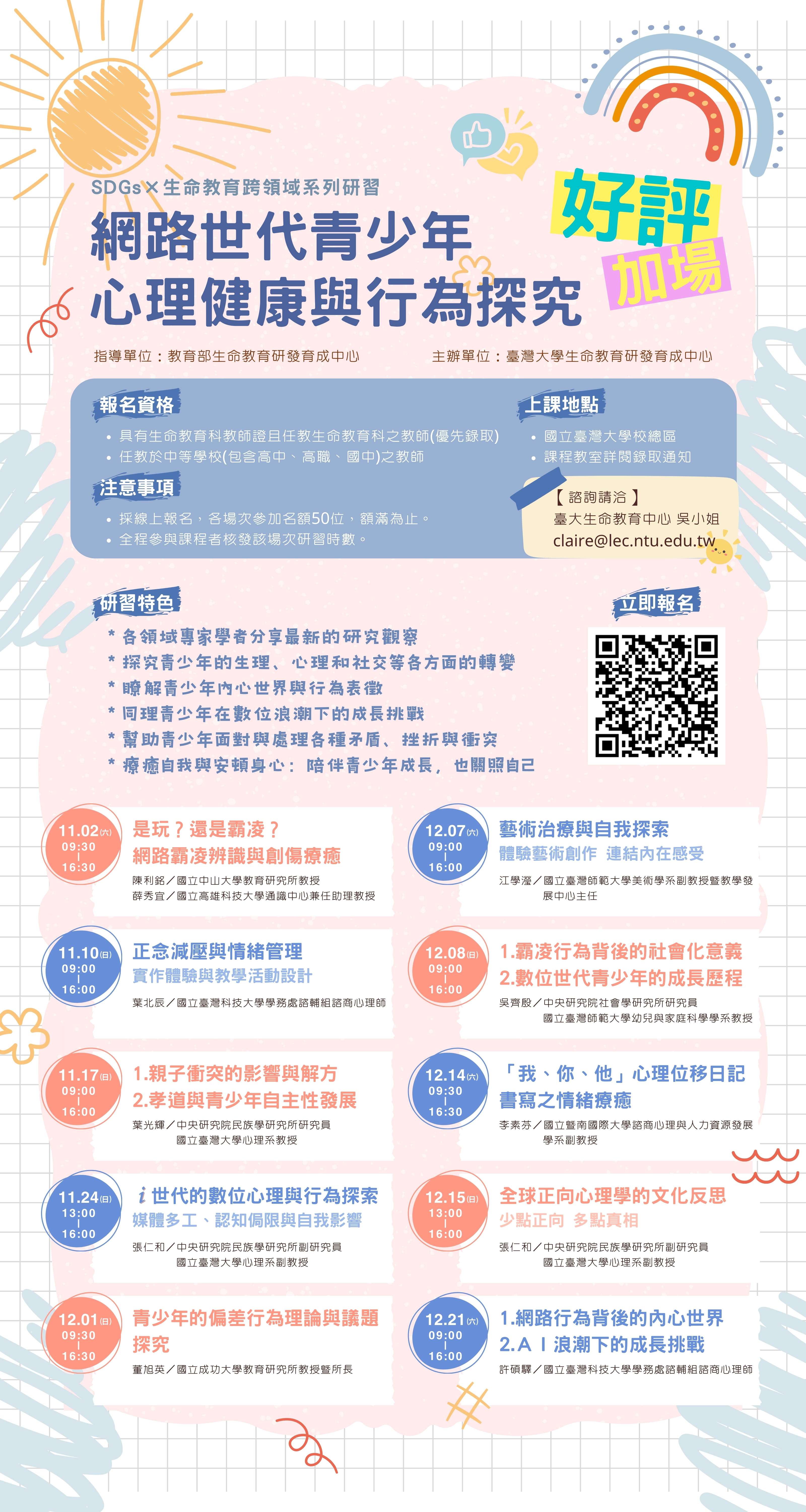 1、11月2日(星期六):網路霸凌辨識與創傷療癒。