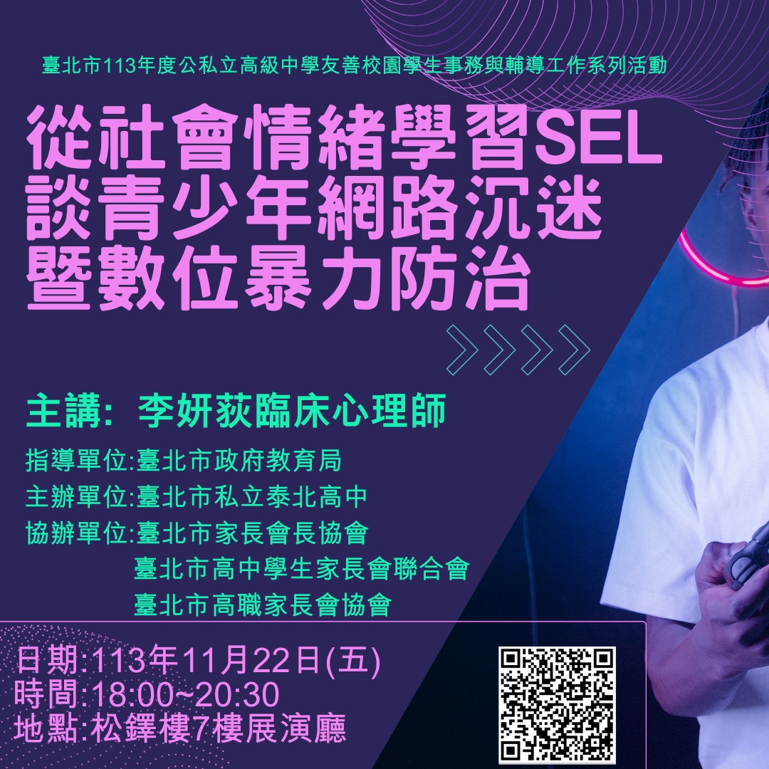 四、主題:從社會情緒學習SEL談青少年網路沉迷暨數位暴力防