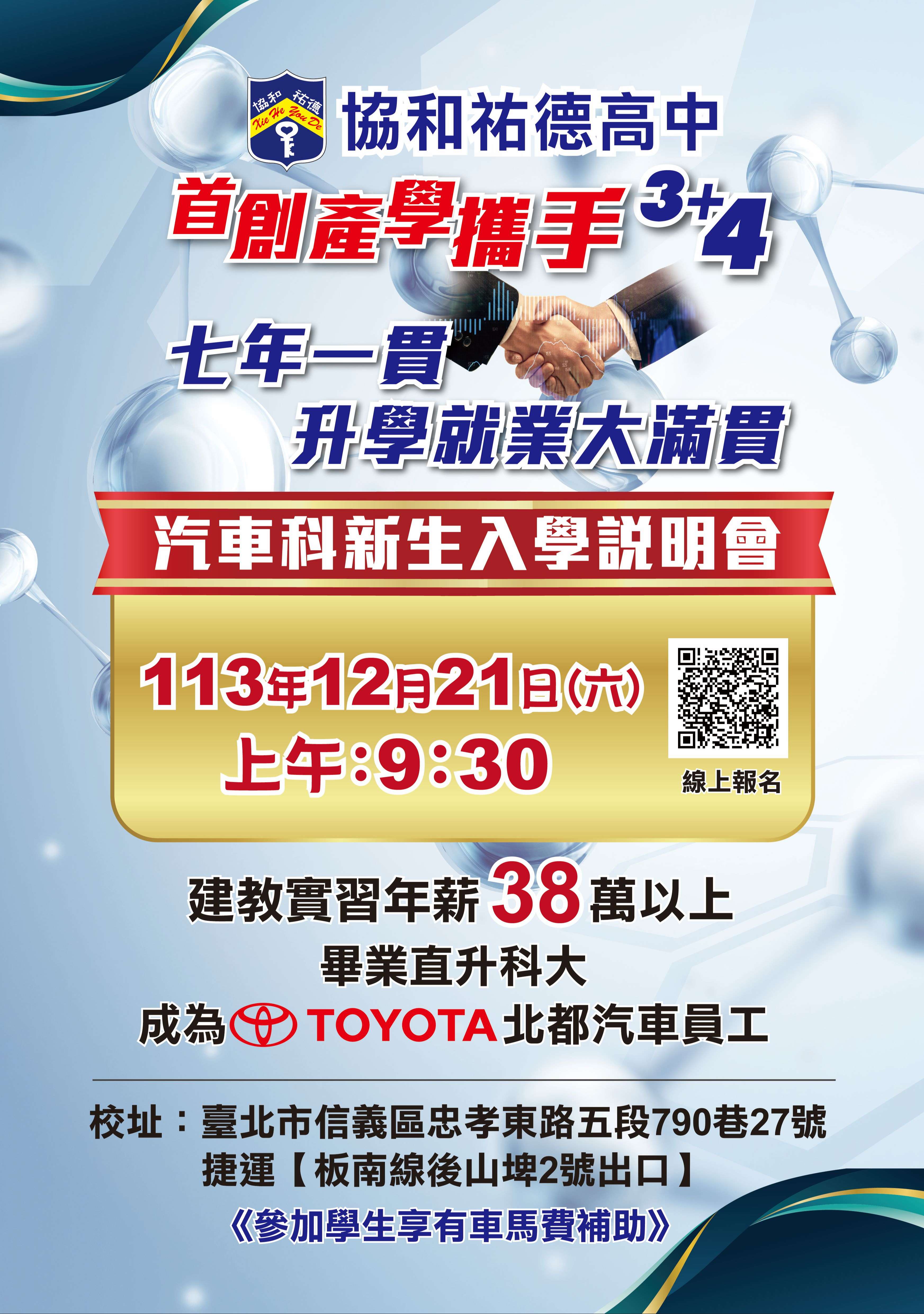 上、畢業直升東南科技大學、成為TOYOTA北都汽車正式員
