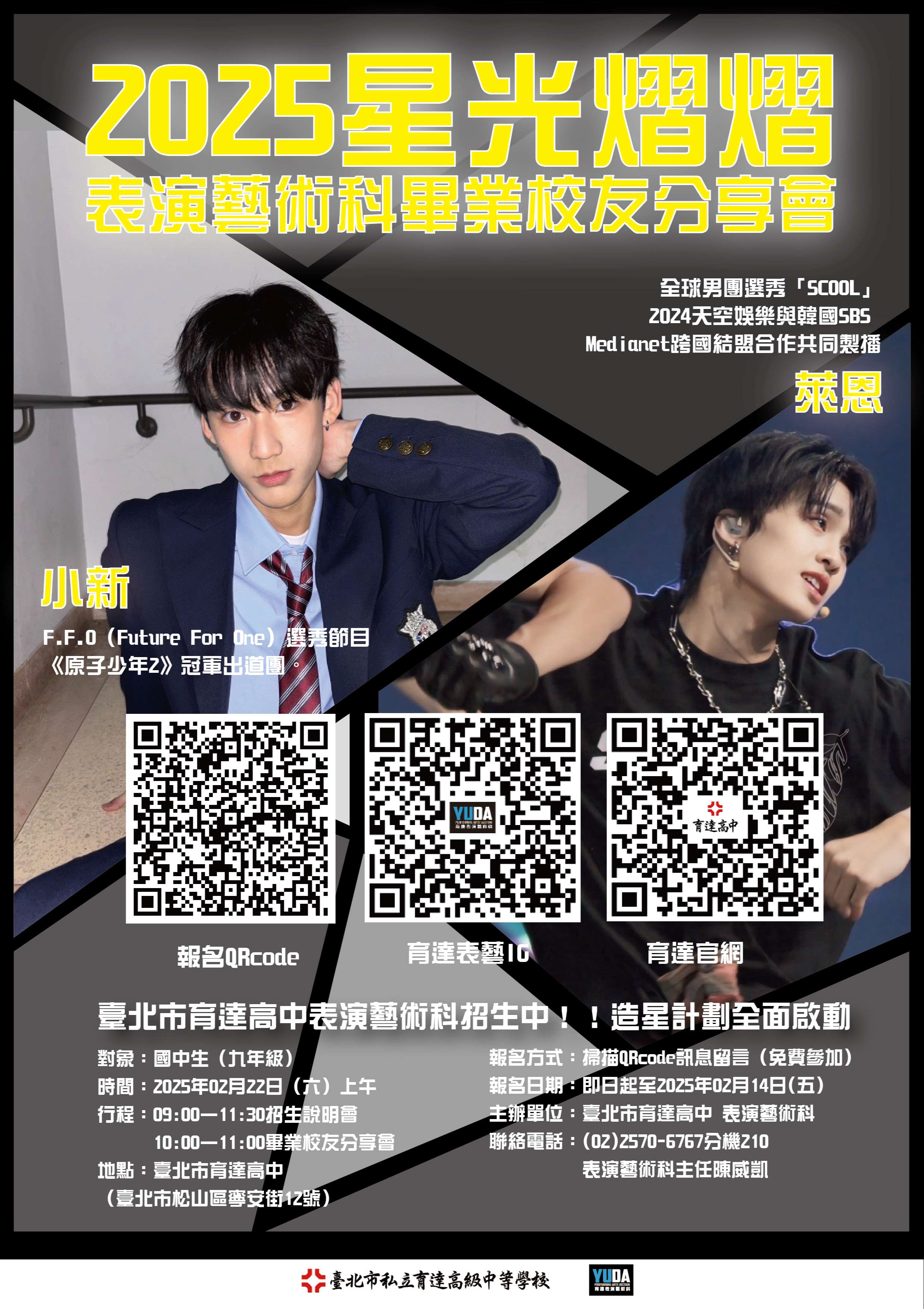 二、校友名單:吳硯新(選秀節目《原子少年2》F.F.O冠軍出道