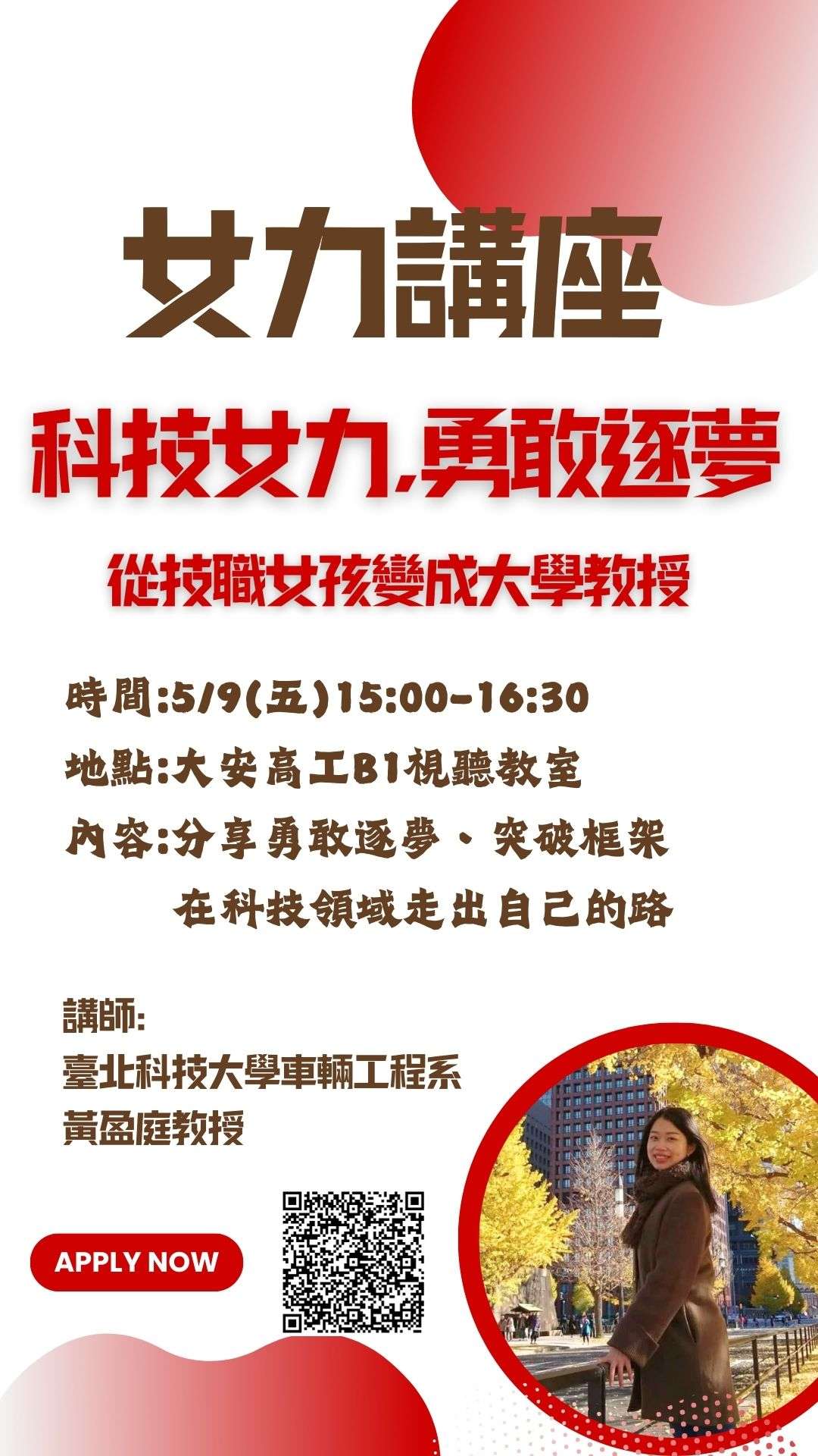 二、講座名稱:科技女力,勇敢逐夢。