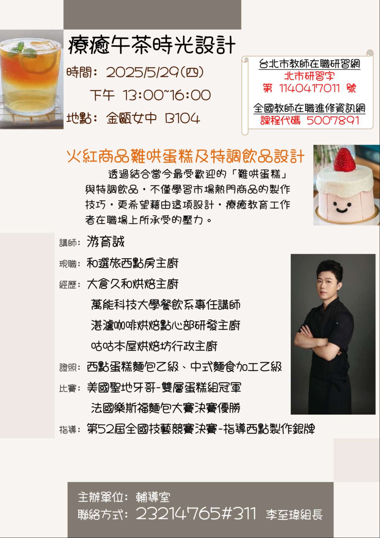 二、地點:臺北市私立金甌女子高級中學B104飲調教室。