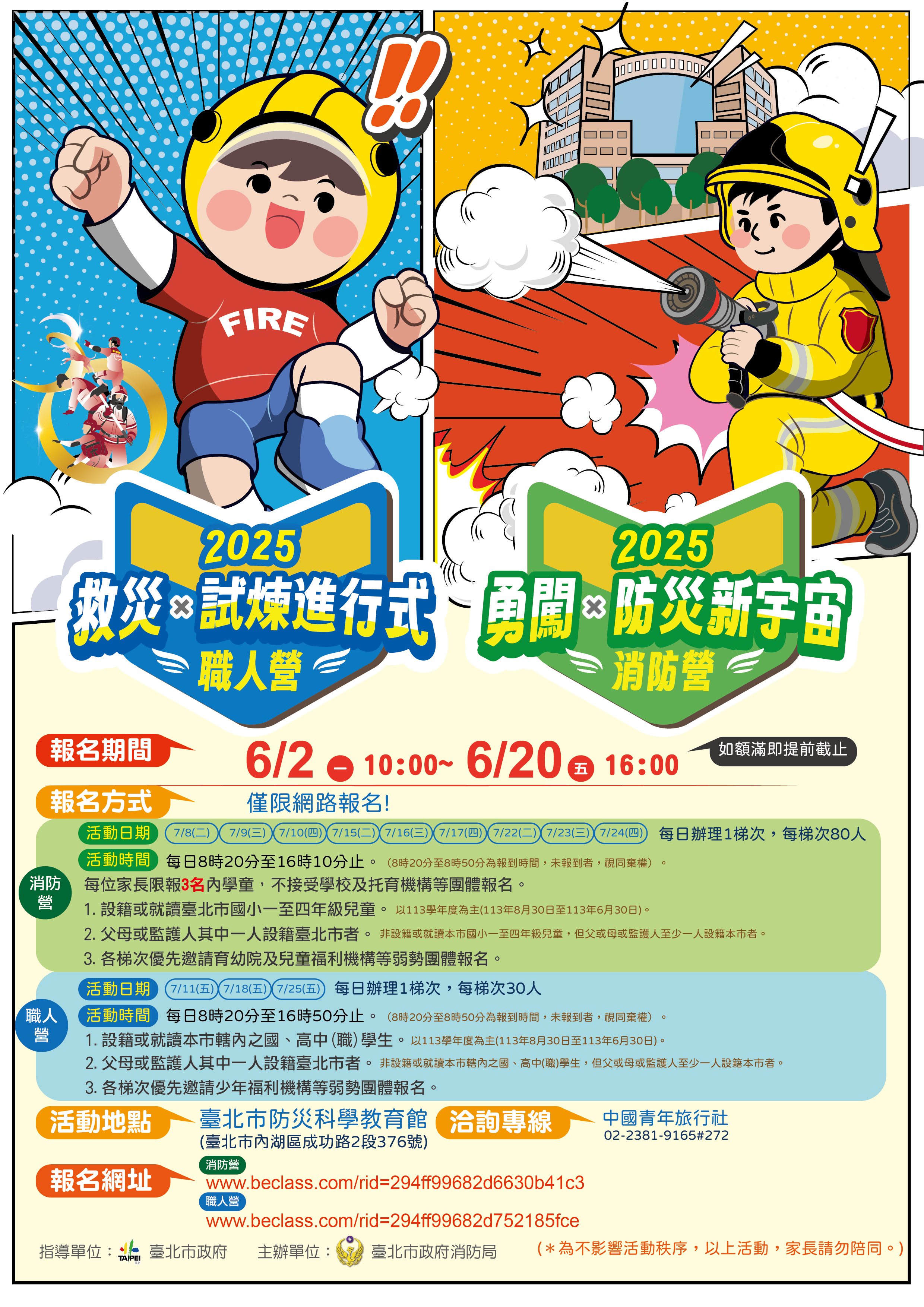 (三)活動地點:臺北市內湖區成功路2段376號(臺北市政府 消防局防災科學教育館及訓練中心)。
