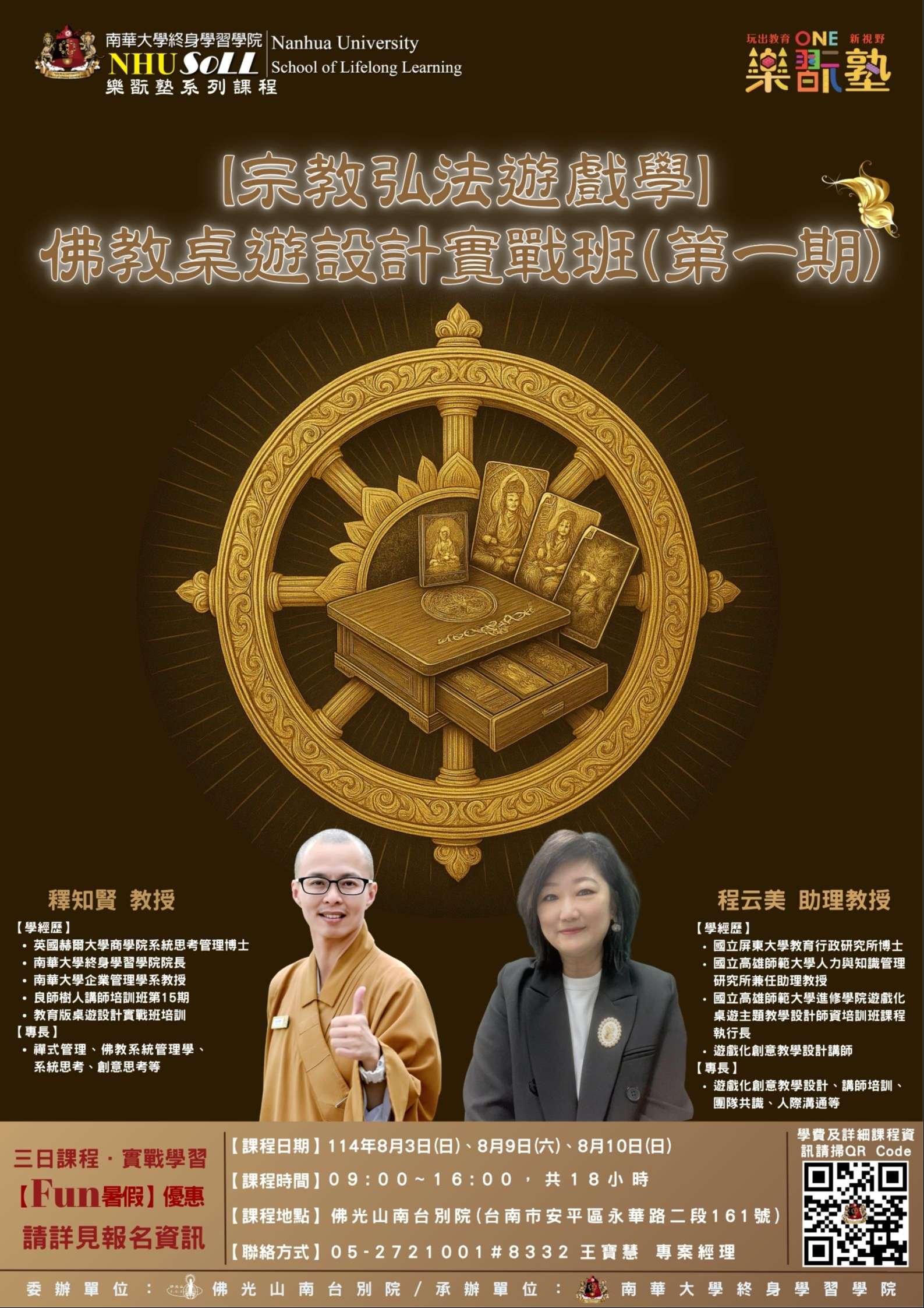 (三) 希望培育有意投入桌遊教學場域之學習者,提升桌遊教 學所應具備之知識與技能。透過遊戲設計演練創新弘法 方式,可以輕鬆學習佛法,探索佛教的不同面向。