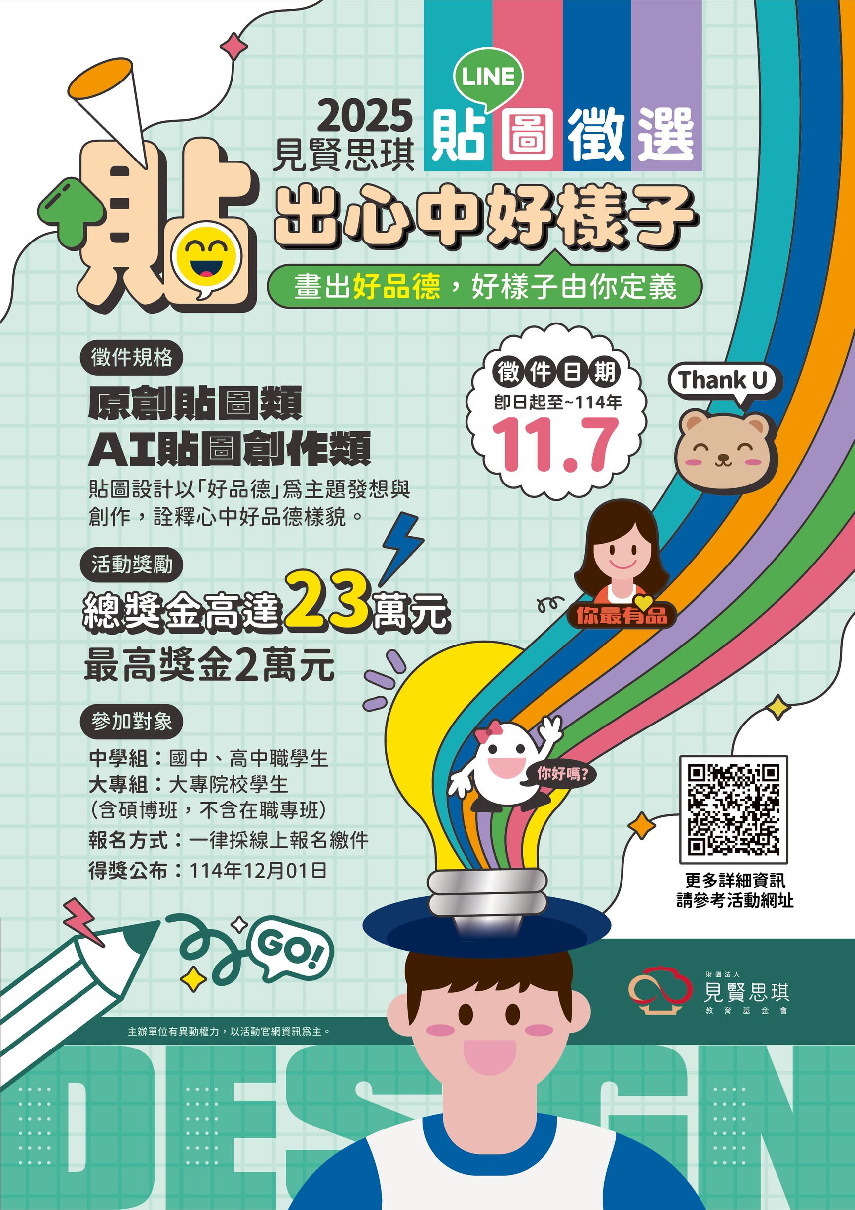 三、檢附「貼出心中好樣子」貼圖徵選活動簡章及海報乙份, 活動資訊:https://pse.is/84tdgx。