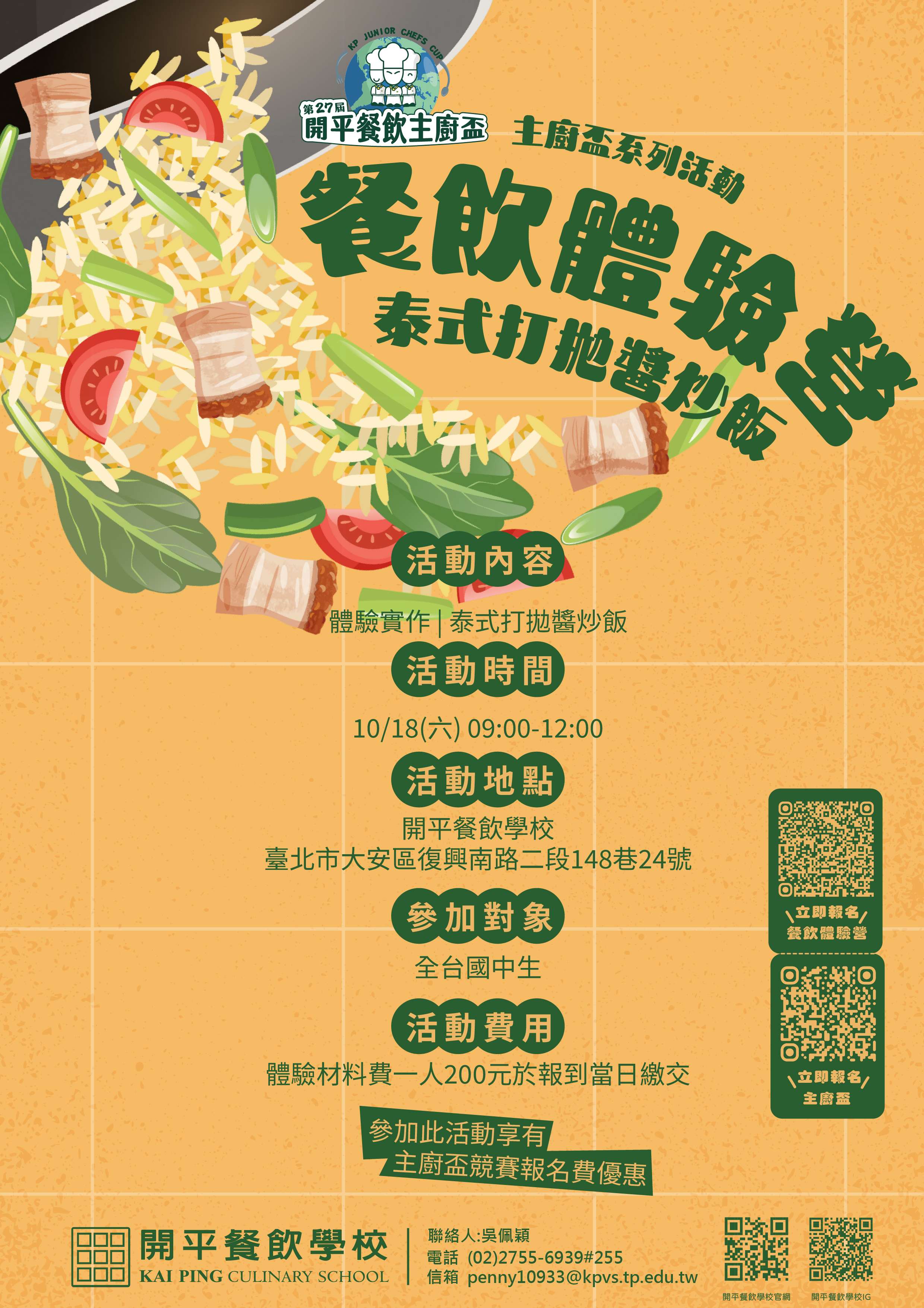 一、本次活動結合第27屆主廚盃國中競賽活動,透過「泰式打