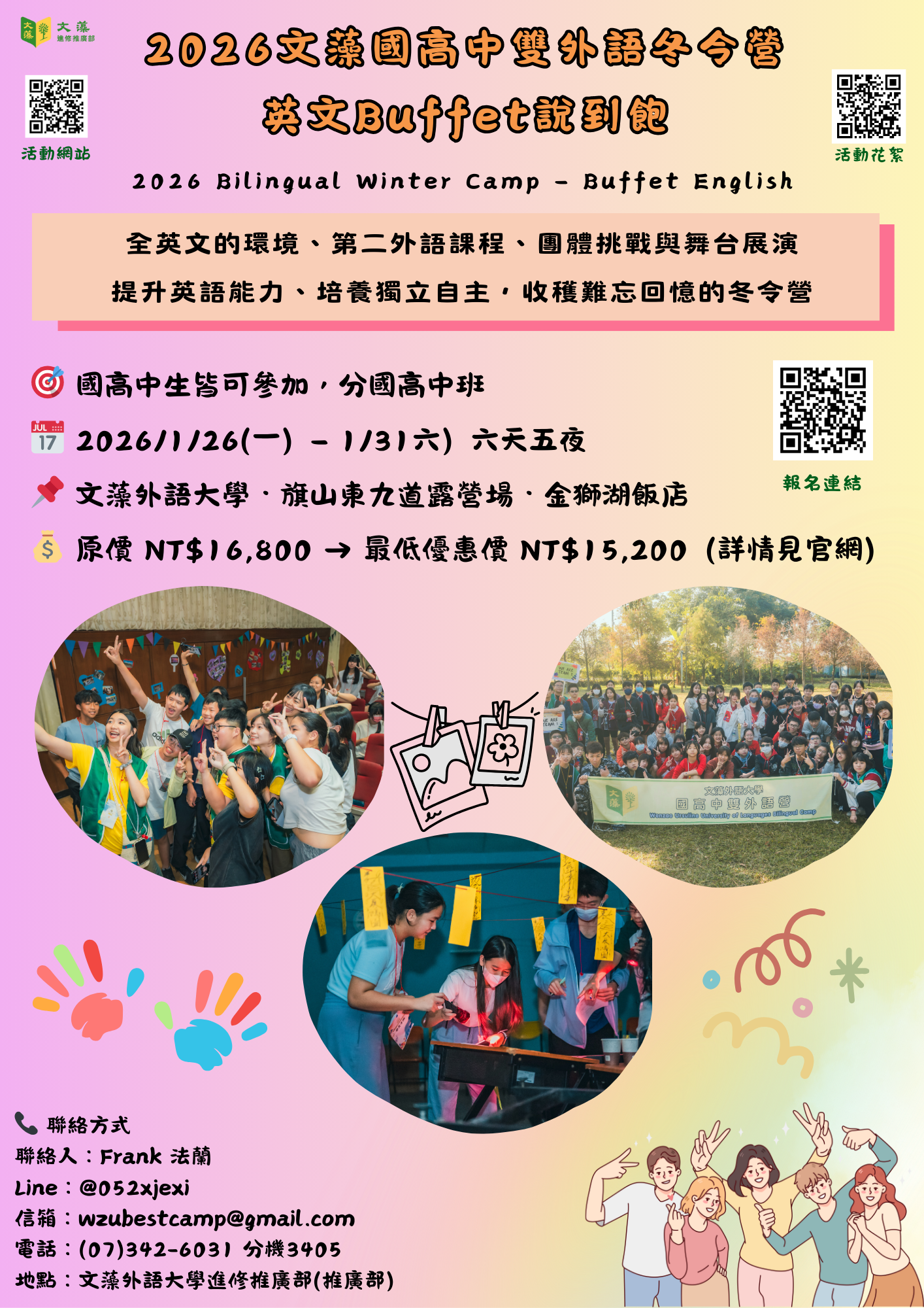 五、詳情可至本校進修推廣部網頁查詢:https://dee.wzu. edu.tw/Course/3900,或洽專線(07)3458212。