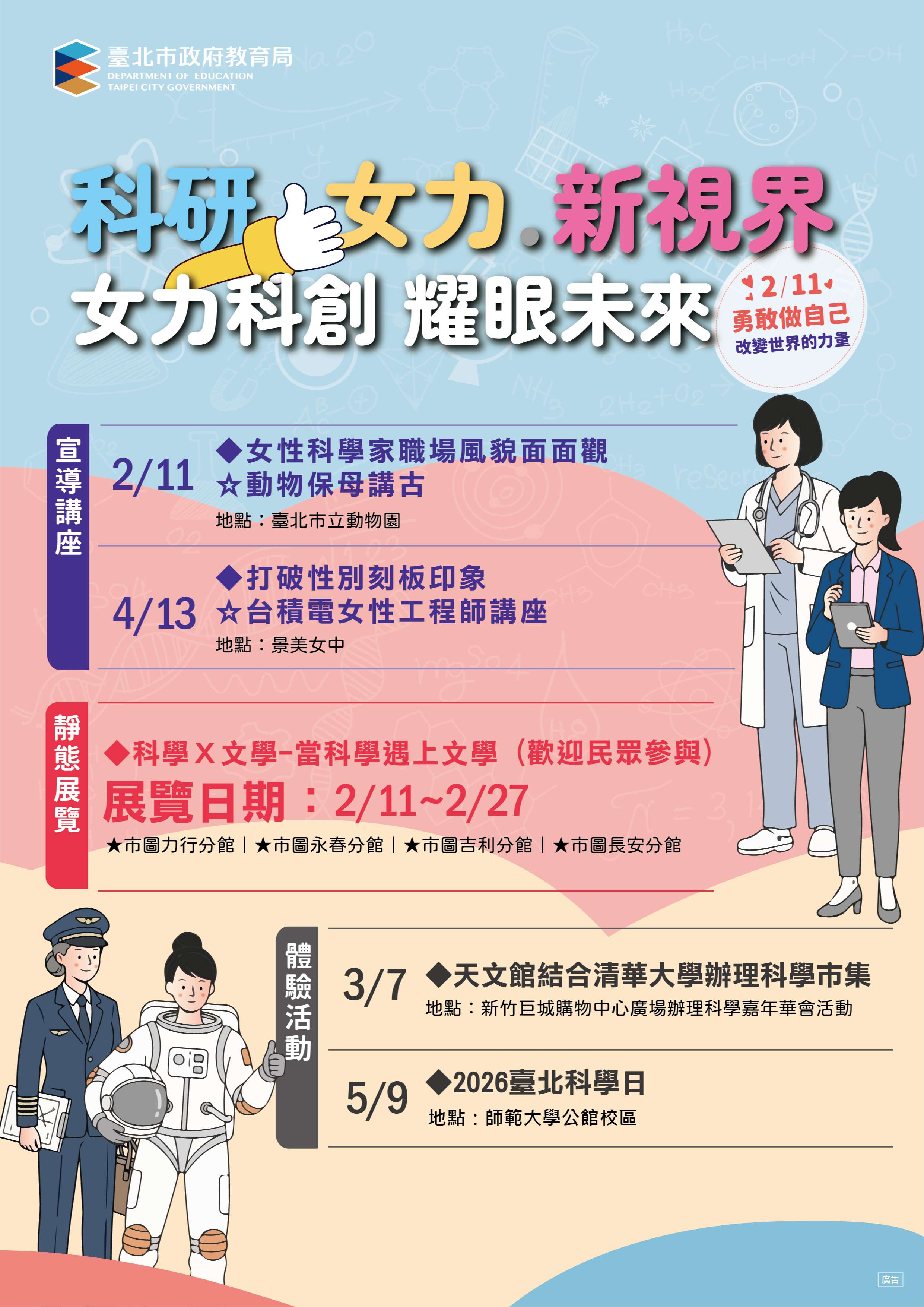 二、為響應國際女性科學日,臺北市教育局自2月11日起辦理